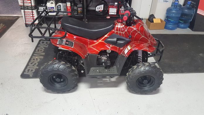 It’s a compact, lightweight ATV built for younger or beginner riders.